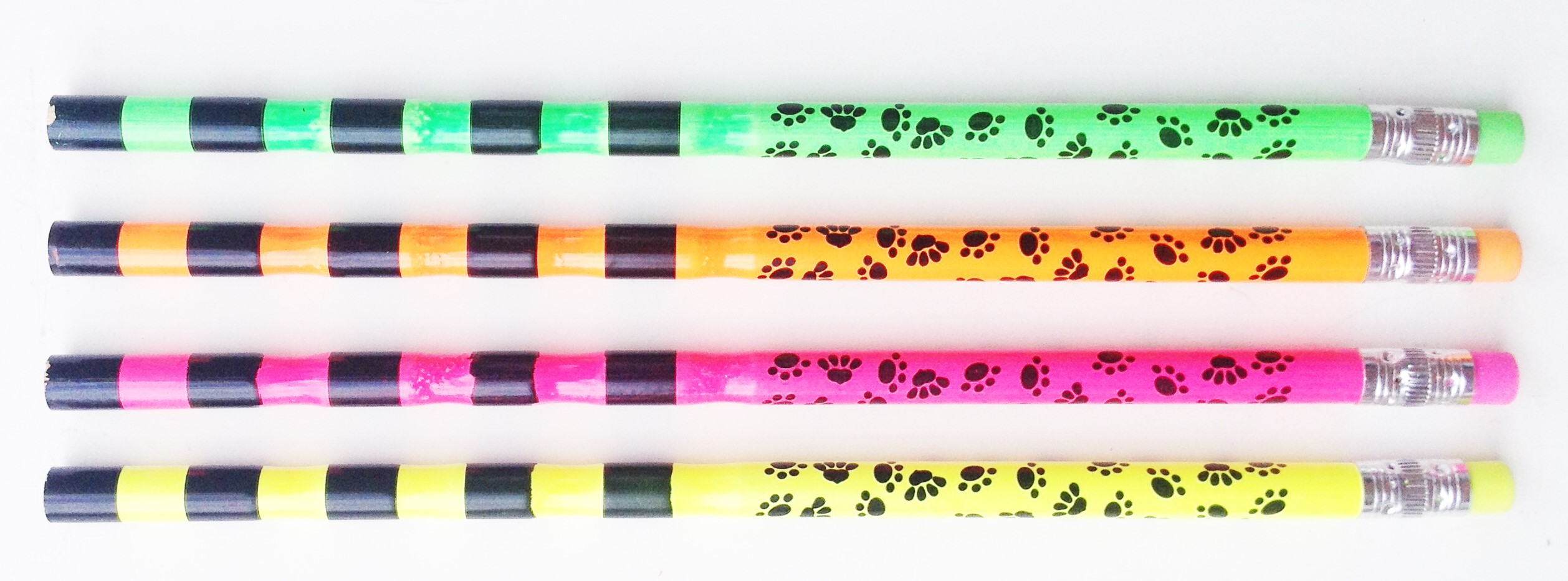 Bright green, yellow, orange, and pink neon pencils.